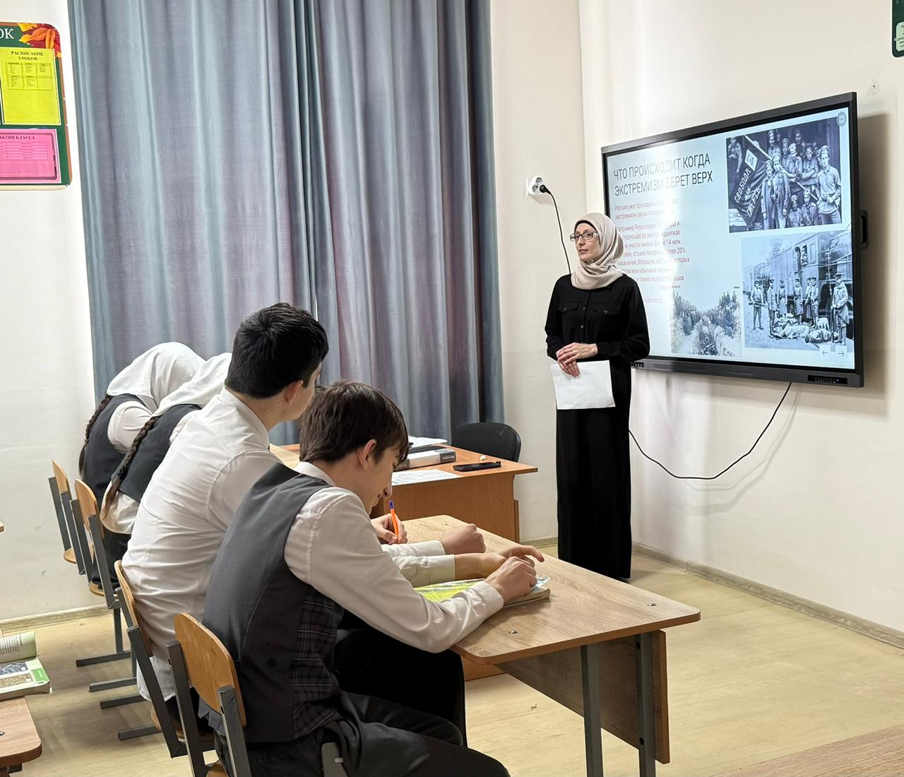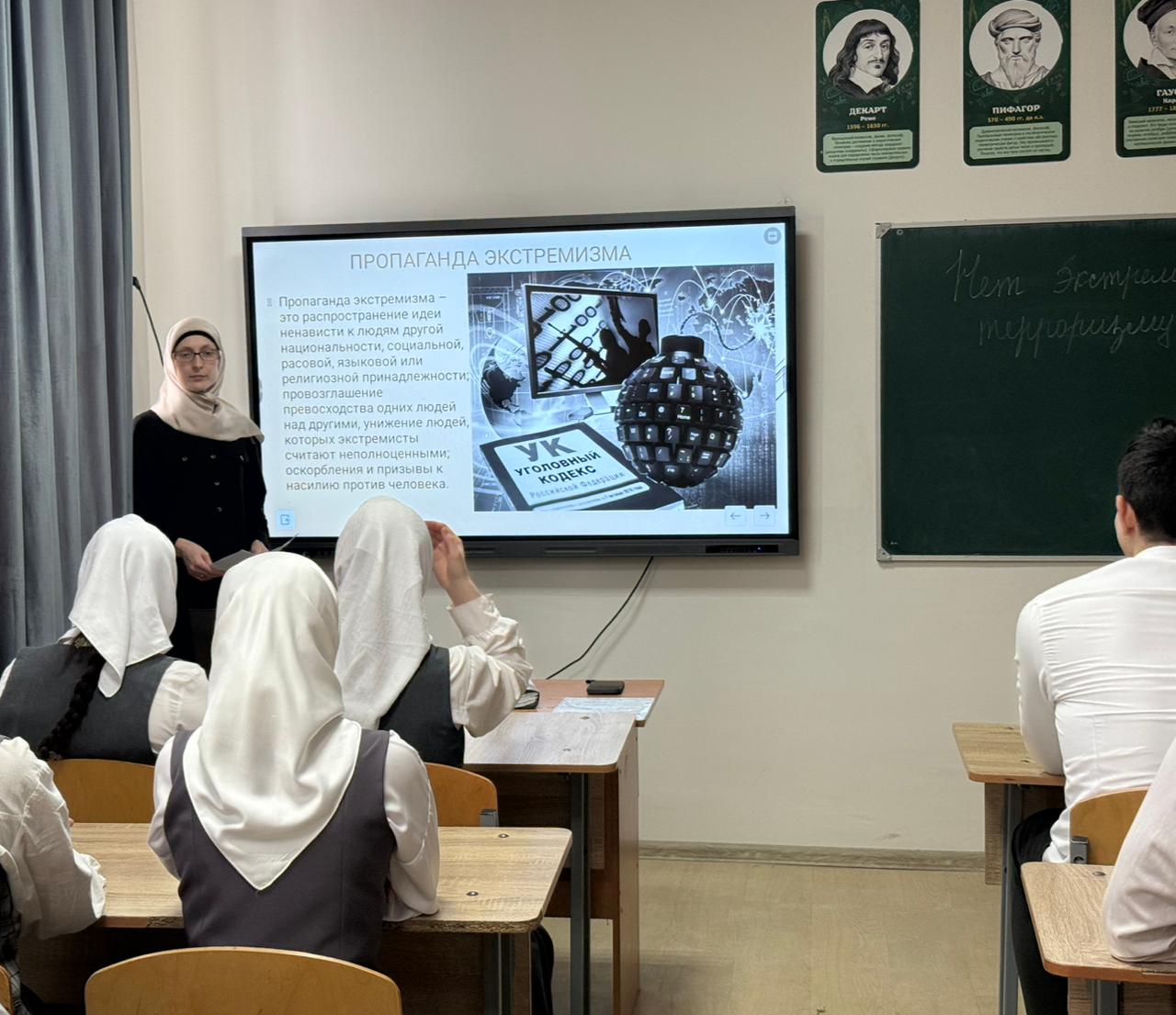 4 февраля среди учащихся 5-11 классов были проведены беседы и классные часы о пагубности экстремистских течений.