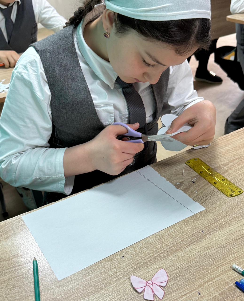 04.03.2026На этой неделе в нашей школе царила атмосфера творчества и весеннего вдохновения.Учащиеся 4-х и 5-х классов решили заранее подготовиться к самому нежному празднику в году и порадовать прекрасную половину нашего коллектива.Ребята своими руками изготовили поздравительные открытки для всех женщин и девушек, работающих в школе.Каждый класс подошел к делу с особой ответственностью и теплотой: в ход пошли яркие краски, цветная бумага, ленты и, конечно же, самые искренние пожелания.